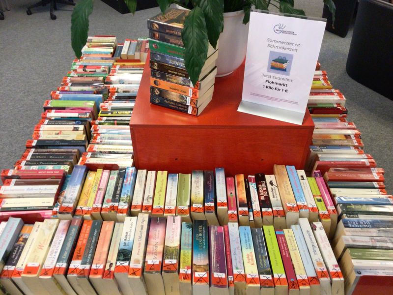 Es ist wieder Flohmarkt-Zeit in der Bibliothek! Für nur 1,- € bekommen Sie 1 Kilo Bücher (wir runden großzügig)
