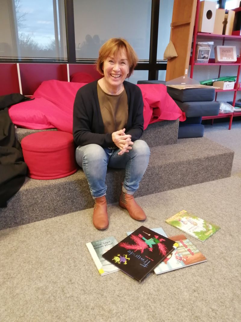 Jeden Donnerstag liest unsere tolle ehrenamtliche Mitarbeiterin Bärbel Trüper unseren kleinen Besuchern Bilderbücher vor. Danach sieht sie so glücklich ( und auch ein bisschen erschöpft ;-) ) aus wie auf unserem Foto von ihr. Und unsere Leseecke ist ein kreatives Rumpelfeld. Wir aus der Bücherei helfen Bärbel dann gerne beim Aufräumen, denn niemand liest so schön und geduldig wie sie!
