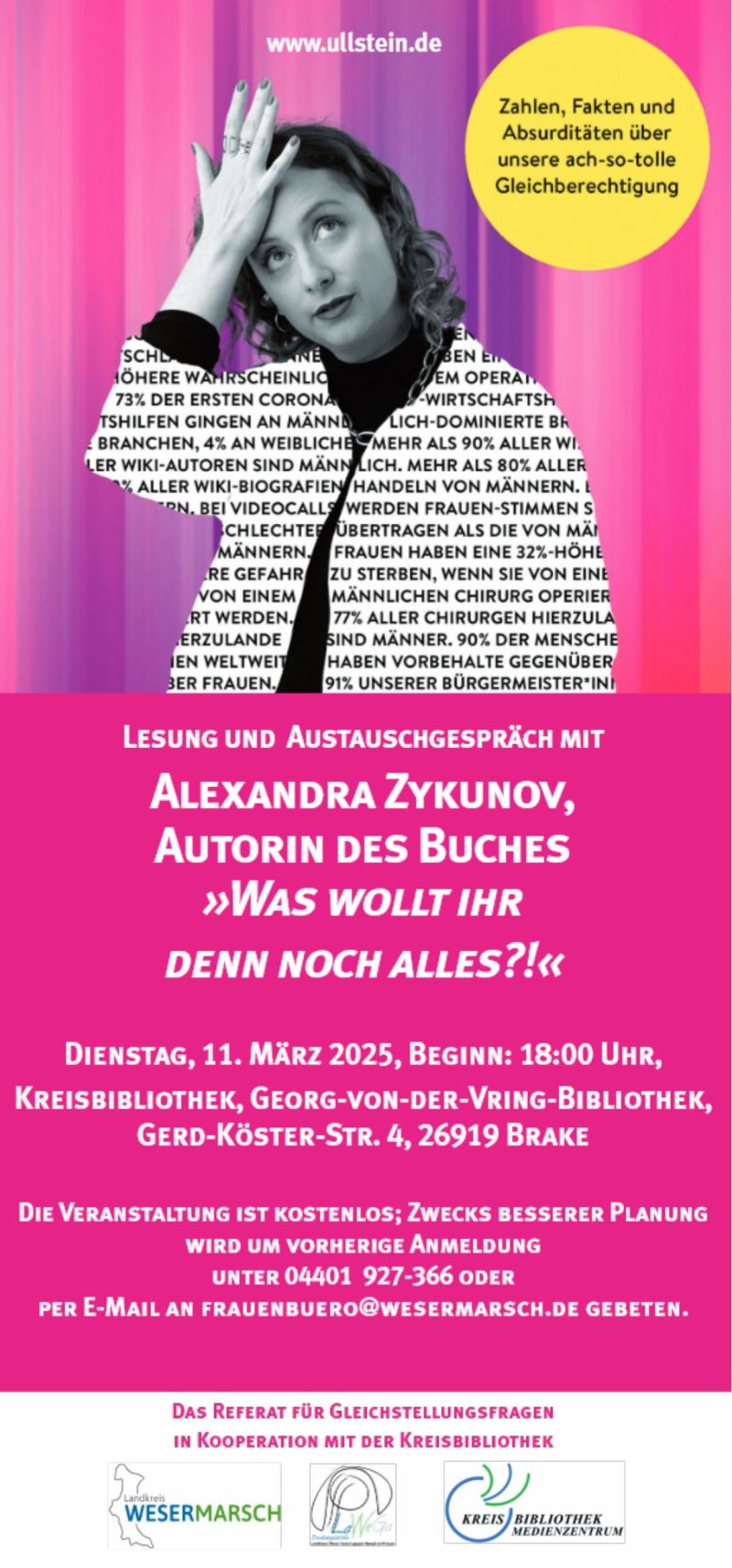 Wir bitten zwecks besserer Planung um Anmeldung an: frauenbuero@wesermarsch.de oder an uns: bibliothek-brake@wesermarsch.de