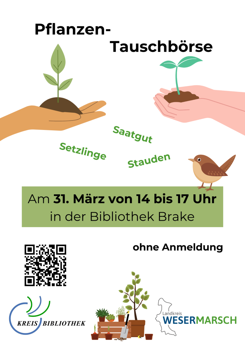 Am 31. März 2025 von 14 bis 17 Uhr wollen wir Ihnen die Möglichkeit bieten, bei uns Pflanzen, Setzlinge, Saatgut und Stauden zu tauschen. Dabei gibt es ausreichend Gelegenheit, in informativen Gartenbüchern zu stöbern und miteinander zu fachsimpeln über die beste Aussaatzeit und neue Ideen zur Permakultur... oder was Ihnen grade in Ihrem Garten oder auf Ihrem Balkon am Herzen liegt.